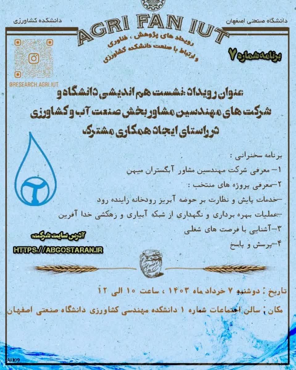 عنوان این رویداد نشست هم اندیشی دانشگاه و شرکتهای های مهندسین مشاور بخش صنعت آب و کشاورزی در راستای ایجاد همکاری مشترک